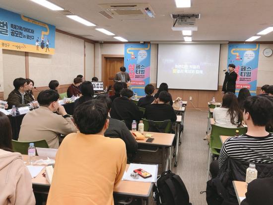 12ÀÏ ±¤»ê±¸(±¸Ã»Àå ±è»ïÈ£)°¡ ±¸Ã»¿¡¼ °ñ¸ñ»ó±Ç Ȱ¼ºÈ¸¦ À§ÇÑ ¡®»ó»óÆä½ºÆ¼¹ú ÃàÁ¦±âȹ/¾ÆÀ̵ð¾î °ø¸ðÀü in ±¤»ê¡¯ ¹ßÇ¥¡¤½É»ç Çà»ç¸¦ ¿°í, ´ëÇлýµéÀÇ ´Ù¾çÇÑ »ý°¢À» °øÀ¯Çß´Ù.