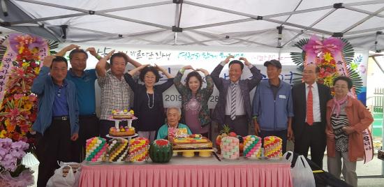 Áö³´Þ 28ÀÏ ±¤»ê±¸ Æòµ¿ Àå·Ï¸¶À»¿¡ »ç´Â À̱â´ö ÇҸӴϰ¡ Àå·Ï°æ·Î´ç¿¡¼ ¸¶À»ÁÖ¹ÎÀÇ ÃàÇϸ¦ ¹ÞÀ¸¸ç ÀÚ³àµéÀÌ Â÷¸° 100¹øÂ° »ýÀÏ»óÀ» ¹Þ¾Ò´Ù.