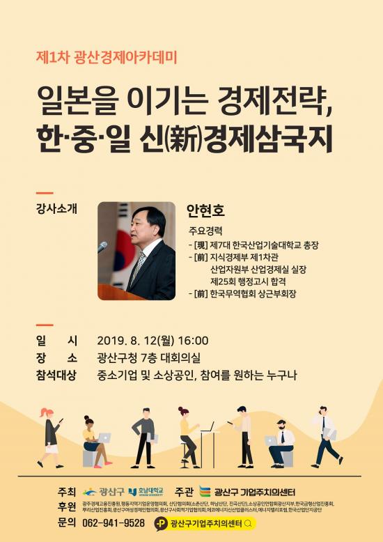 ¿À´Â 12ÀÏ ±¤»ê±¸ ±â¾÷ÁÖÄ¡ÀǼ¾ÅͰ¡ ±¸Ã»¿¡¼ Çѱ¹»ê¾÷±â¼ú´ë ¾ÈÇöÈ£ ÃÑÀåÀ» ÃÊû, ¡®ÀϺ»À» À̱â´Â °æÁ¦Àü·«, ÇÑÁßÀÏ ãæ(½Å) °æÁ¦»ï±¹Áö¡¯¸¦ ÁÖÁ¦·Î ¡®±¤»ê°æÁ¦¾ÆÄ«µ¥¹Ì¡¯¸¦ °³ÃÖÇÑ´Ù.