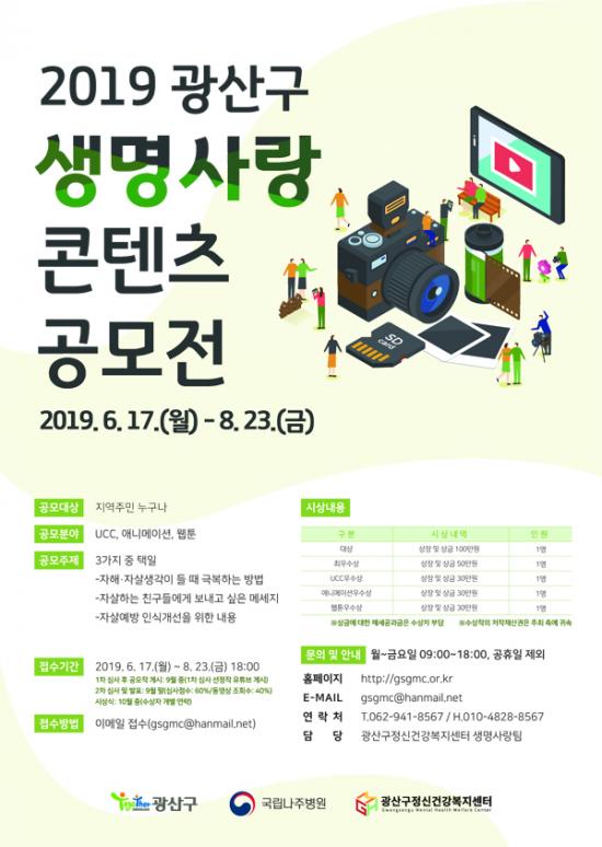 ±¤»ê±¸Á¤½Å°Ç°º¹Áö¼¾ÅÍ(¼¾ÅÍÀå:Á¤À¯¶õ)´Â »ý¸í»ç¶ûÀÇ °æ°¢½ÉÀ» Àϱú¿ì°í, Æí°ßÀ» ÇØ¼ÒÇϱâ À§ÇØ ±¤ÁÖ±¤¿ª½Ã¡¤Àü¶ó³²µµ Áö¿ªÁÖ¹ÎÀ» ´ë»óÀ¸·Î¡¸2019 »ý¸í»ç¶û ÄÜÅÙÃ÷ °ø¸ðÀü¡¹À» °³ÃÖÇÑ´Ù.