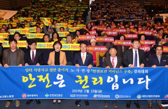 ±¤ÁÖ½Ã¿Í ±¤ÁÖ°í¿ë³ëµ¿Ã», ¾ÈÀüº¸°Ç°ø´Ü ±¤ÁÖÁö¿ªº»ºÎ°¡ 15ÀÏ ½Ãû 3Ãþ ´ëȸÀǽǿ¡¼ ¡®ÀÏÅÍ »ç¸Á»ç°í Àý¹Ý ÁÙÀ̱⠰áÀÇ´ëȸ¡¯¸¦ ¿°í Áö¿ª»çȸ ¾ÈÀü½ÇõÀ» ´ÙÁüÇß´Ù. À̳¯ °áÀÇ´ëȸ´Â Á¤Á¾Á¦ ÇàÁ¤ºÎ½ÃÀå, ±è¿µ¹Ì ±¤ÁÖ°í¿ë³ëµ¿Ã»Àå, ¹ÚµÎ¡¦ |