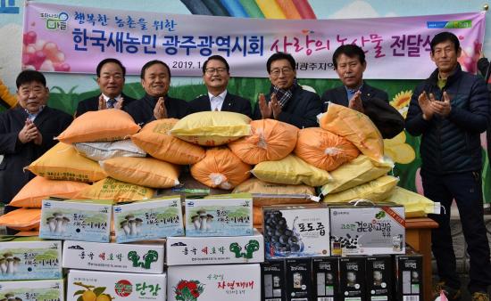 ³óÇù±¤ÁÖº»ºÎ(º»ºÎÀå ±èÀϼö)´Â 2ÀÏ Çѱ¹»õ³ó¹Î ±¤ÁÖ½Ãȸ(ȸÀå ±è¿ë¾È) ȸ¿øµé°ú ÇÔ²² ±¤»ê±¸ »ïµµµ¿ »õ³¯Çб³(±³Àå ÀÌõ¿µ)À» ã¾Æ »õ³ó¹Î ȸ¿øµéÀÌ »ý»êÇÑ 2¹é¸¸ ¿ø »ó´çÀÇ »ç¶ûÀÇ ³ó»ê¹° Àü´Þ½ÄÀ» °¡Á³´Ù.