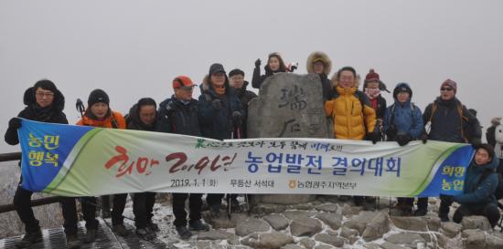 ³óÇù±¤ÁÖº»ºÎ(º»ºÎÀå ±èÀϼö)´Â »õÇØ ù ³¯ ¹«µî»ê ¼¼®´ë¿¡ ¿Ã¶ó ¡°Èñ¸Á 2019³â ³ó¾÷¹ßÀü °áÀÇ´ëȸ¡±¸¦ °®°í ³ó°¡¼Òµæ 5õ¸¸ ¿ø ´Þ¼º°ú ³ó¾÷ÀÎ ¿µ³óÁö¿ø ¹× Á¶±â »ç¾÷ÃßÁøÀ» °áÀÇÇß´Ù.