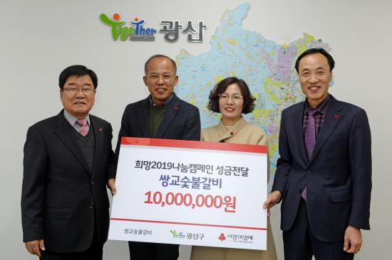 12ÀÏ ¿Ü½Ä¾÷ü ½Ö±³½¡ºÒ°¥ºñ(´ëÇ¥ ¼Û¼±Èñ)°¡ Áö³ÇØ¿¡ À̾î 1,000¸¸¿øÀ» ±¤»ê±¸¸¦ ÅëÇØ ±¤ÁÖ»çȸº¹Áö°øµ¿¸ð±Ýȸ ¡®Èñ¸Á 2019 ³ª´® Ä·ÆäÀΡ¯ ¼º±ÝÀ¸·Î Àü´ÞÇß´Ù. ±¤»ê±¸´Â À̳¯ Àü´Þ¹ÞÀº ÁöÁ¤±âʱÝÀ» ¾î·Á¿î ÀÌ¿ôÀ» À§ÇØ »ç¿ëÇÑ´Ù. |