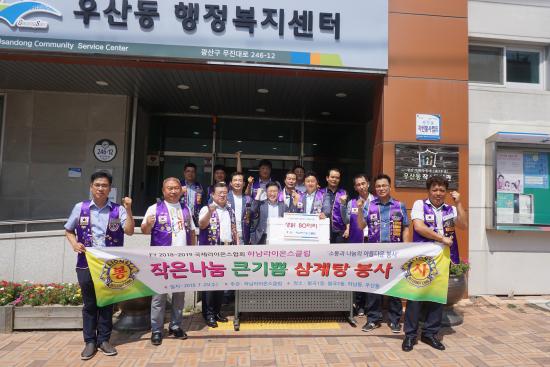 25ÀÏ ±¤ÁÖ Çϳ²¶óÀ̿½ºÅ¬·´(ȸÀå ¹ÚÀç¿ø) ȸ¿øµéÀÌ Áߺ¹À» ¾ÕµÎ°í 40¸¸¿ø »ó´çÀÇ ´ß 80¸¶¸®¸¦ ¿ì»êµ¿ ÇàÁ¤º¹Áö¼¾ÅÍ¿¡ Àü´Þ, °æ·Î´ç 15°÷ ¾î¸£½ÅµéÀÇ °Ç°ÇÑ ¿©¸§³ª±â¸¦ µµ¿Ô´Ù.