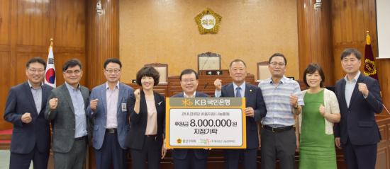 KB±¹¹ÎÀºÇà ¼ÛÁ¤ÁöÁ¡Àº 1ÀÏ ¿ÀÀü ±¤»ê±¸ÀÇȸ ÀÇÀå½Ç¿¡¼ Åõ°Ô´õ±¤»ê ³ª´®¹®ÈÀç´Ü¿¡ ÈÄ¿ø±Ý 800¸¸¿øÀ» Àü´ÞÇß´Ù.
