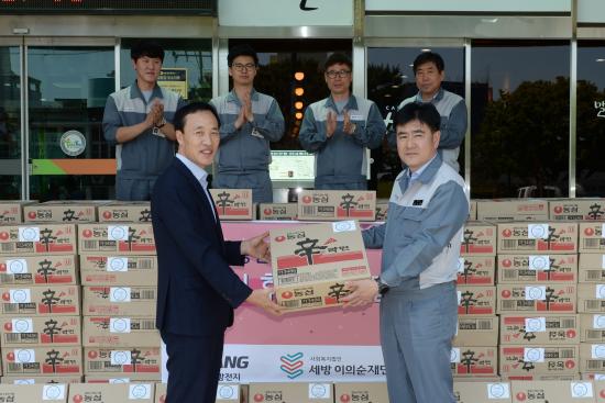 1ÀÏ, ¢ß¼¼¹æÀüÁö ±¤ÁÖ°øÀå(º»ºÎÀå ±è´ë¿õ)ÀÌ °æÁ¦Àû ÇüÆíÀÌ ¾î·Á¿î Àú¼ÒµæÃþ¿¡ ³ª´²´Þ¶ó¸ç »çȸº¹Áö¹ýÀÎ ¡®¼¼¹æÀÌÀǼøÀç´Ü¡¯À» ÅëÇØ ±¤»ê±¸¿¡ 500¸¸¿ø »ó´ç ¶ó¸é 273¹Ú½º¸¦ Àü´ÞÇß´Ù.