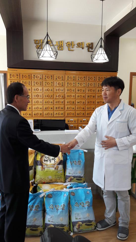Áö³ 3ÀÏ ±¤»ê±¸ µµ»êµ¿ ¸¼Àº»ù ÇÑÀÇ¿ø Àå½Â±Õ ¿øÀåÀÌ È¦·Î »ç´Â ¾î¸£½Å°ú Àå¾ÖÀÎ µî¿¡°Ô ³ª´²´Þ¶ó¸ç µ¿Áֹμ¾ÅÍ¿¡ ½Ò 20Æ÷(300kg)¸¦ Àü´ÞÇß´Ù.