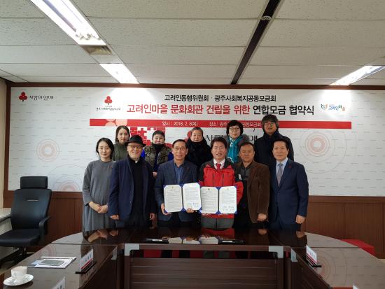 ±¤ÁÖÁ¤Âø °í·ÁÀε¿Æ÷µéÀÇ ¾ÈÁ¤µÈ Á¤ÂøÀ» Áö¿øÇÏ´Â °í·ÁÀε¿ÇàÀ§¿øÈ¸(À§¿øÀå ¹Ú¿ë¼ö)¿Í ±¤ÁÖ»çȸº¹Áö°øµ¿¸ð±Ýȸ(ȸÀå ±è»ó¿)´Â 8ÀÏ ±¤ÁÖ»çȸº¹Áö°øµ¿¸ð±Ýȸ¿¡¼ °í·ÁÀÎ ¸¶À» ¹®Èȸ°ü °Ç¸³À» À§ÇÑ ¿¬ÇÕ¸ð±Ý Çù¾à½ÄÀ» °¡Á³´Ù.
