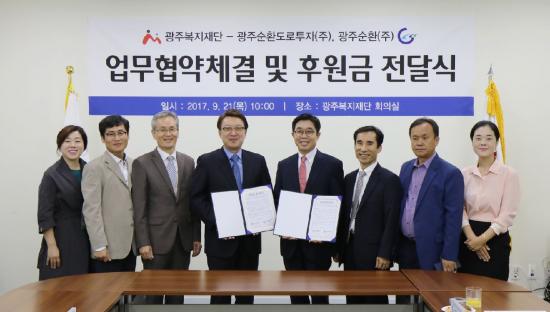 ±¤ÁÖº¹ÁöÀç´Ü(´ëÇ¥ÀÌ»ç Àå Çö)°ú ±¤ÁÖ¼øÈ¯µµ·ÎÅõÀÚ(ÁÖ), ±¤ÁÖ¼øÈ¯(ÁÖ)(´ëÇ¥ÀÌ»ç ÀÌ¿µÈÆ)´Â 21ÀÏ ¿ÀÀü Àç´Ü ȸÀǽǿ¡¼ Áö¿ª»çȸ ¼Ò¿Ü°èÃþ ¹× »çȸÀû ¾àÀÚÁö¿øÀ» À§ÇÑ ¾÷¹«Çù¾à½ÄÀ» °¡Á³´Ù.