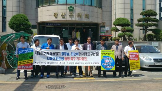 ´õºÒ¾î¹ÎÁÖ´ç ±¤»ê °©・À» Áö¿ª ´ç¿øµéÀÌ Á¤°æ³²・ÃÖ¼øÀÌ ºñ·Ê´ëÇ¥ÀÇ¿øÀÇ ÀÚÁøÅ»´çÀ» °·ÂÈ÷ Ã˱¸ÇÏ°í ³ª¼¹´Ù.