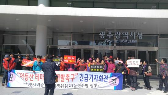 ±¤»ê±¸ ¿î¼öµ¿ ÁֹεéÀÌ ±¸¼ºÇÑ ¡®¾îµî»ê°ü±¤´ÜÁö ÇÇÇØ´ëÃ¥À§¿øÈ¸¡¯°¡ 21ÀÏ ¼º¸íÀ» ¹ßÇ¥ÇÏ°í ¾îµî»ê °ü±¤´ÜÁö Á¶¼º»ç¾÷ Áï°¢ Âø¼ö¸¦ ±¤ÁÖ±¤¿ª½Ã¿¡ Ã˱¸Çß´Ù.