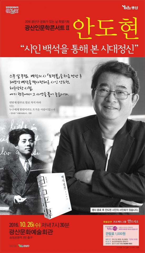 ±¤»ê±¸°¡ ¿À´Â 26ÀÏ Àú³á 7½Ã30ºÐ ±¤»ê¹®È¿¹¼úȸ°ü¿¡¼ °®´Â Àι®ÇÐÄܼƮ¿¡¼´Ù. ÀÌ ÄܼƮ´Â ±¤»ê±¸°¡ ¸Å¿ù ¸¶Áö¸· ÁÖ ¼ö¡¦ |