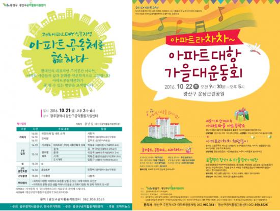 ¡®2016¾ÆÆÄÆ®DAY-¾ÆÆÄÆ®¶óÂ÷Â÷¡¯°¡ ¿À´Â 21¡22ÀÏ ÀÌÆ² µ¿¾È ÆîÃÄÁø´Ù. ±¤»ê±¸¿Í ±¤»ê±¸°øÀÍȰµ¿Áö¿ø¼¾ÅͰ¡ ÁÖÃÖÇϰí 2016¾ÆÆÄÆ®DAYÁ¶Á÷¿ö¿øÈ¸°¡ ÁÖ°üÇÏ´Â Çà»ç´Ù. ¡®¾ÆÆÄÆ®DAY¡¯´Â ¾ÆÆÄÆ® ÁֹεéÀÌ ÇÑ ³¯ ÇÑ °÷¿¡ ¸ð¿© ¾î¿ï¸®¸ç ¾ÆÆÄÆ®°ø¡¦ |