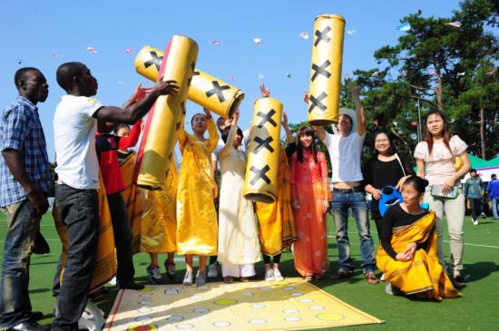 Ãß¼®À» ¸ÂÀº ¿Ü±¹ÀÎ ±Ù·ÎÀÚµéÀÌ ±¤»ê °÷°÷¿¡¼ ´Ùä·Î¿î Çà»ç·Î ¸íÀýÀ» Áñ±ä´Ù.