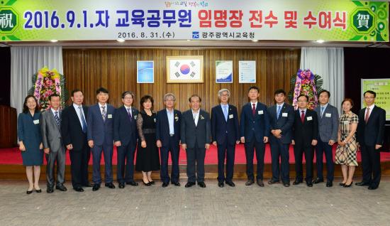 ±¤Áֽñ³À°Ã»(±³À°°¨ ÀåÈÖ±¹)ÀÌ Áö³´Þ 31ÀÏ ¿ÀÈÄ ½Ã±³À°Ã» ´ëȸÀǽǿ¡¼ 9¿ù 1ÀÏÀÚ·Î ½Å±Ô ÀÓ¿ëµÈ ±³Àå 21¸í, ±³(¿ø)°¨ 19¸í, ±³À°Àü¹®Á÷ 23¸í ÃÑ 63¸í(À¯Ä¡¿ø 2, Ãʵî 36, Áßµî 25)¿¡°Ô ÀÓ¸íÀåÀ» Àü¼ö¡¤¼ö¿©Çß´Ù.