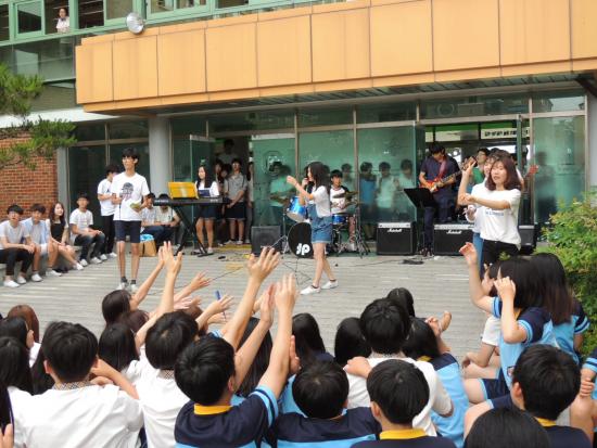 ½ÅâÁßÇб³(±³Àå ¾çº´¼÷)ÀÇ ÀÛÀº À½¾Çȸ´Â Áö³ 16ÀÏ Á¡½É½Ã°£, Çлý ¹× ±³»çµéÀÌ Âü¼®ÇÑ °¡¿îµ¥ ±³³» ¡®¾ÆÁ¤´ÙÁ¤ ½°ÅÍ¡¯¿¡¼ ¿·È´Ù.