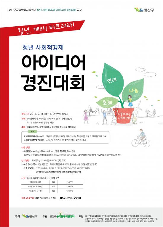±¤»ê±¸°øÀÍȰµ¿Áö¿ø¼¾ÅÍ(¼¾ÅÍÀå À±³½Ç)´Â Áö³ 14ÀÏ °ø°í¸¦ ÅëÇØ ¡®Ã»³â »çȸÀû °æÁ¦ ¾ÆÀ̵ð¾î °æÁø´ëȸ¡¯¸¦ ÁøÇàÇÑ´Ù°í ¹àÇû´Ù.