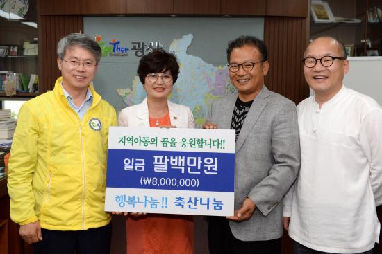 ±¤»ê±¸¿¡¼ Ȱµ¿ÇÏ´Â ¡®Ãà»ê ³ª´®¡¯ÀÌ 16ÀÏ ¡°Áö¿ª¾Æµ¿¼¾ÅÍ ¾Æµ¿À» À§ÇØ ½á´Þ¶ó¡±¸ç ¼º±Ý 800¸¸ ¿øÀ» Åõ°Ô´õ±¤»ê ³ª´®¹®ÈÀç´Ü¿¡ ±âŹÇß´Ù.