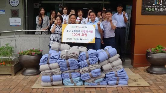 À̸¶Æ® ±¤»êÁ¡(Á¡Àå ¼º´Áø)ÀÌ ¿©¸§ÀÌºÒ 100並 16ÀÏ Åõ°Ô´õ±¤»ê ¿ì»êµ¿Áö¿ª»çȸº¸ÀåÇùÀÇü(À§¿øÀå ÃÖÁ¤¼ö¡¤ÀÌÇÏ ¡®¿ì»êµ¿Áö»çÇù¡¯)¿¡ ÀüÇß´Ù.