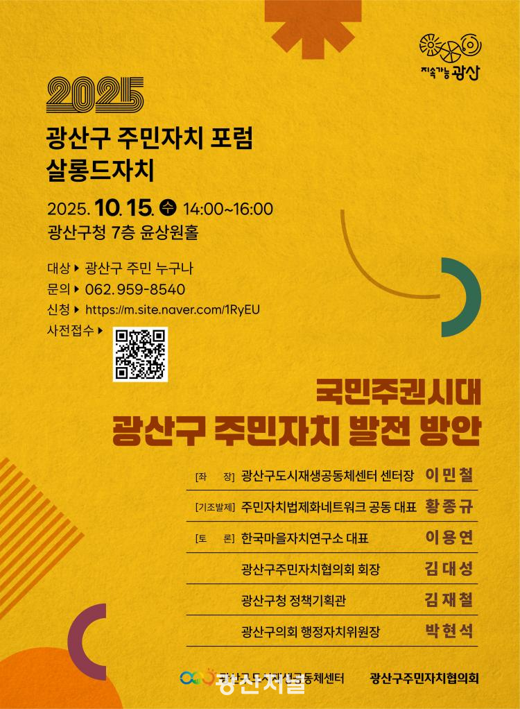 ¶ÇÇÑ, À̿뿬 Çѱ¹ ¸¶À» ÀÚÄ¡¿¬±¸¼Ò ´ëÇ¥, ±è´ë¼º ±¤»ê±¸ ÁÖ¹ÎÀÚÄ¡ÇùÀÇȸ ȸÀå, ±èÀçö ±¤»ê±¸Ã» Á¤Ã¥±âȹ°ü, ¹ÚÇö¼® ±¤»ê±¸ÀÇȸ ÇàÁ¤ÀÚÄ¡À§¿øÀåÀÌ ÆÐ³Î·Î Âü¿©ÇÑ´Ù.