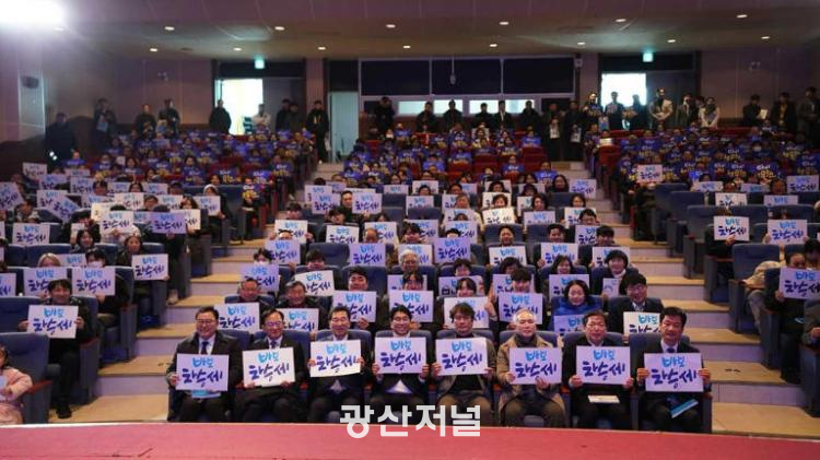 À̳¯ Çà»ç¿¡´Â ¾çºÎ³² ¹ÎÁÖ´ç ±¤ÁֽôçÀ§¿øÀå, ½ÅÁ¤ÈÆ¡¤¹Ú±ÕÅà ±¹È¸ÀÇ¿ø, ±èº´³»¡¤±èÀ̰ ±¸Ã»Àå, '100¸¸ À¯Æ©¹ö' ȲÇöÇÊ ¿ª»ç¹Ù·ÎÀâ±â¿¬±¸¼ÒÀå µî °¢°è°¢ÃþÀÇ ÁÖ¿ä ÀλçµéÀÌ Âü¼®ÇØ ÀÚ¸®¸¦ ºû³Â´Ù. °±âÁ¤ ±¤ÁÖ½ÃÀå, ¹ÚÁö¿ø ±¹È¸ÀÇ¿ø µîÀº ¿µ»ó ¸Þ½ÃÁö¸¦ ÅëÇØ ÃàÇÏÀÇ ¶æÀ» ÀüÇß´Ù.